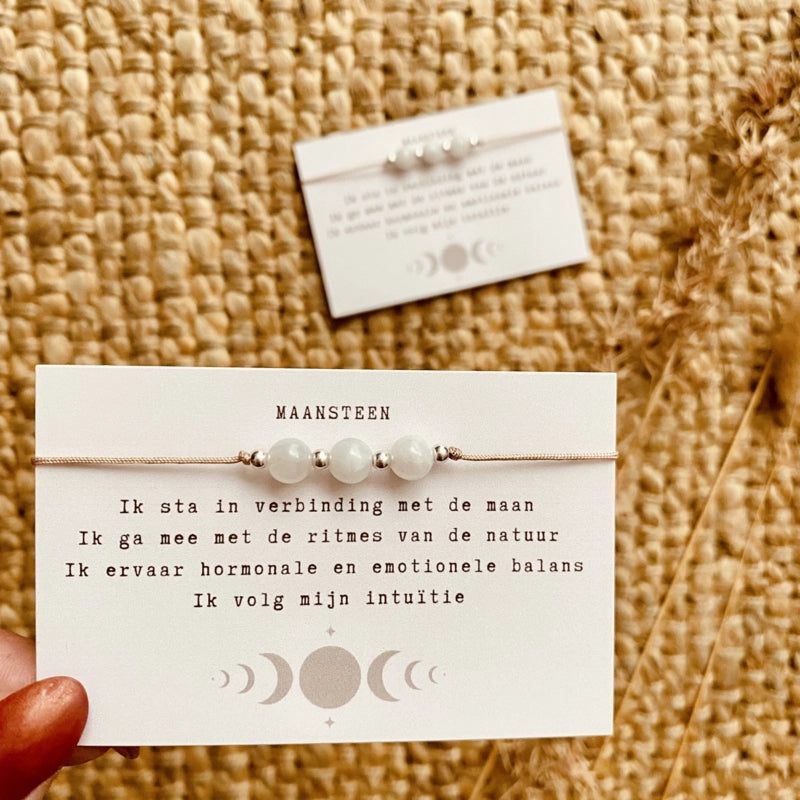 Werking: Maansteen staat voor vrouwelijke energie, intuïtie en een zachte, rustige uitstraling.