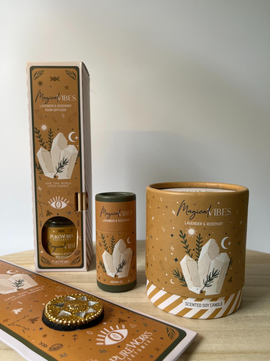 Deze bundel brengt een verfrissende en energieke sfeer in je ruimte. De geur van lavendel en rozemarijn bevordert helderheid en verkwikking, en helpt bij het creëren van een harmonieuze omgeving.