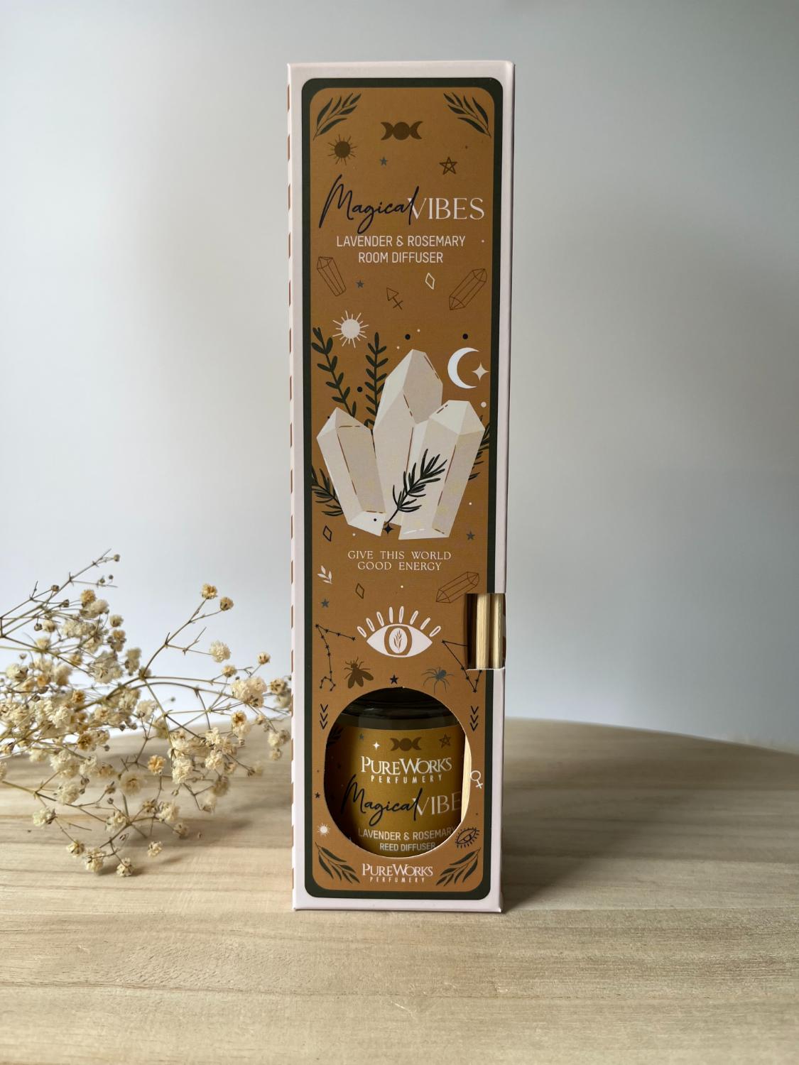 Diffuser met stokjes en natuurlijke geurige oliën.