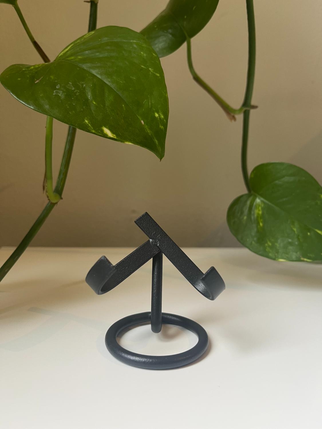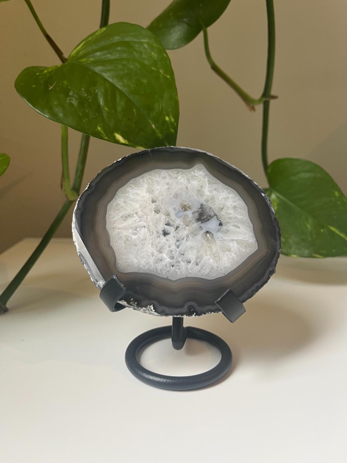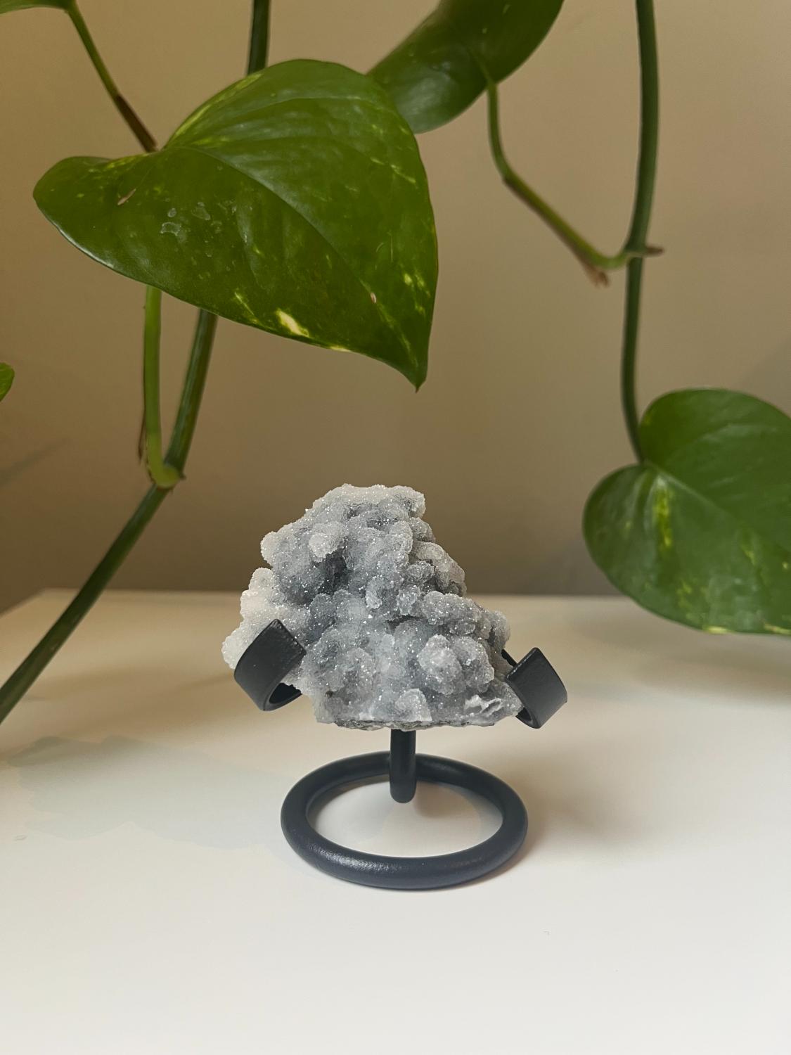 Deze metalen houder is ideaal om een edelsteen, cluster of mineralen mooi te laten zien. Het eenvoudige design legt de focus volledig op je steen. Geschikt voor kleine schijven of clusters.