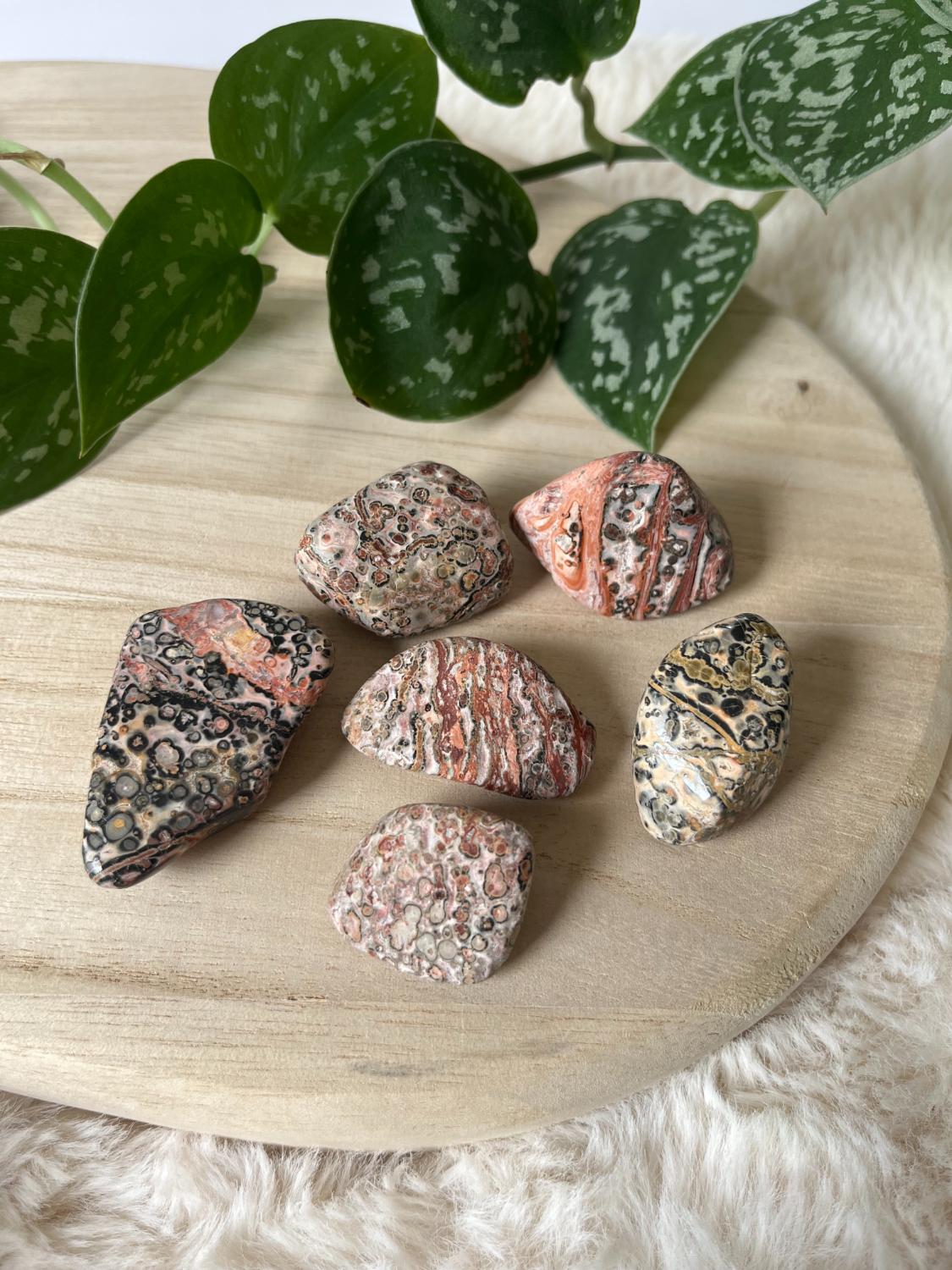 Werking: Leopard Skin Jaspis biedt ondersteuning bij het versterken van je intuïtie en helpt je om innerlijke rust en balans te vinden. Het bevordert stabiliteit en moed, en biedt bescherming tijdens avontuurlijke reizen.