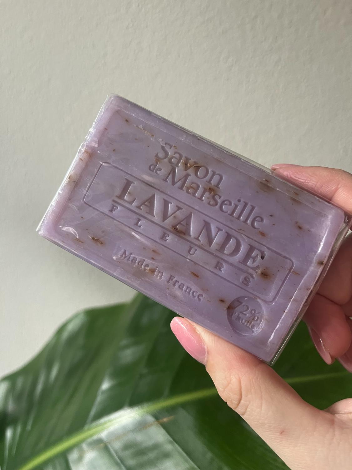 Dompel jezelf onder in de kalmerende geur van lavendel met deze traditionele Marseille zeep. Verrijkt met echte lavendelbloemen en zoete amandelolie voelt de zeep extra zacht aan, reinigt de huid mild en houdt hem gehydrateerd. De licht exfoliërende werking maakt de huid fris en zacht, geschikt voor alle huidtypes, ook de droge of gevoelige huid.