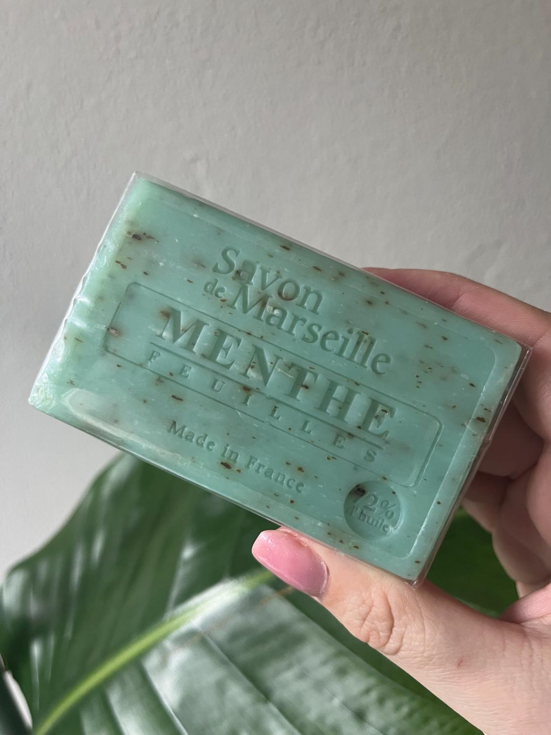 Deze palmolievrije Marseille zeep met de geur van muntblaadjes is verrijkt met amandelolie en voelt extra zacht aan op de huid. De verfrissende geur maakt het een fijne zeep voor dagelijks gebruik en geschikt voor alle huidtypes.