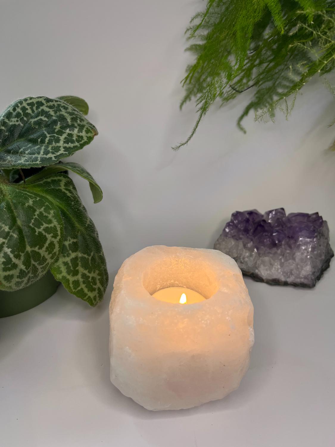 Deze zoutsteen theelichthouder is perfect voor het creëren van een warme, rustgevende sfeer in je ruimte.